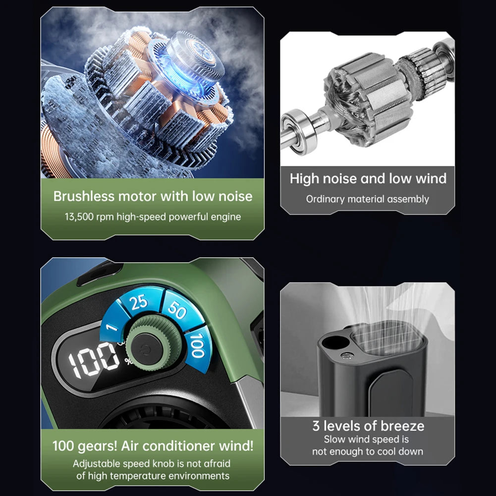 - Powerful & Long-Lasting – Equipped with a 6000mAh rechargeable battery, enjoy hours of cooling without frequent recharging