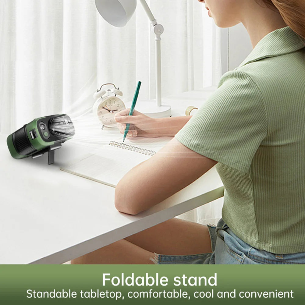 Whether you're working outdoors, hiking, traveling, or just relaxing, this multi-functional fan keeps you cool, comfortable, and illuminated.