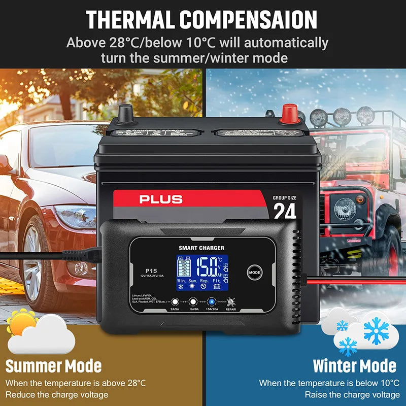 Suit for: Lithium/LiFePO4/Lead-Acid (AGM,GEL,EFB, MF, FLOODED, VRLA, SLA and Wet batteries)