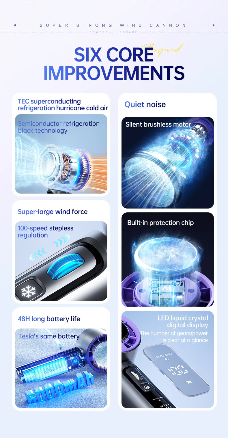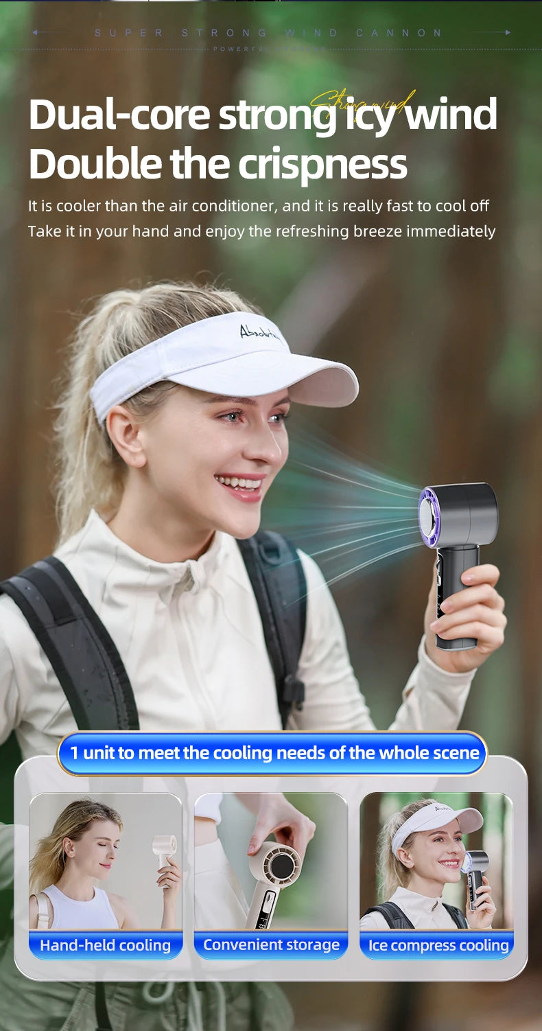 Beat the heat in style with this Upgraded Semiconductor Refrigeration Handheld Fan, your ultimate portable cooling companion! Designed for blazing-fast airflow and ultra-long battery life, this sleek, high-speed fan keeps you refreshed at home, outdoors, or on the go.