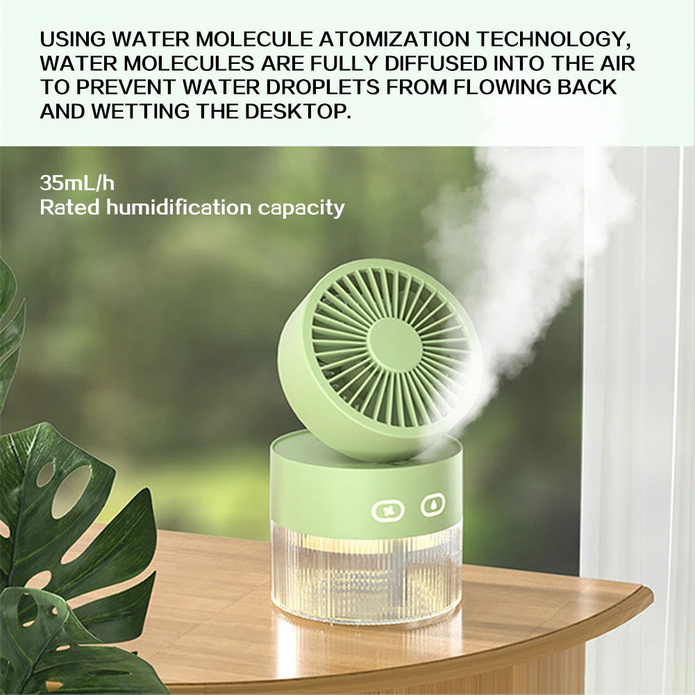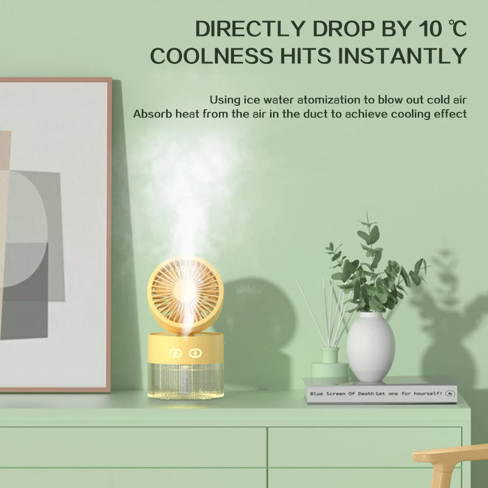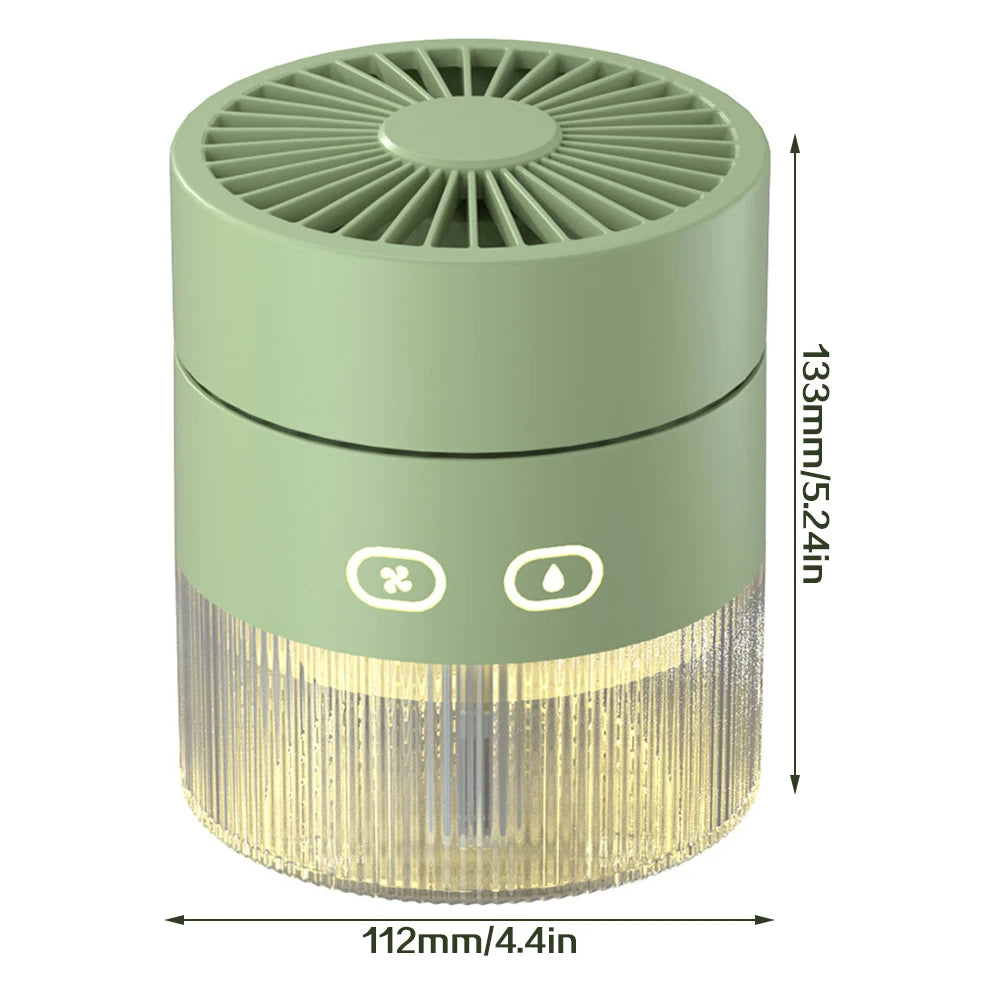 Introducing the USB Mini Air Cooler + Humidifier & LED Light—your ultimate 3-in-1 portable comfort companion! Whether you're working at your desk, relaxing in bed, or need a refreshing breeze, this sleek little powerhouse keeps you cool, adds moisture to dry air, and sets the perfect mood with soothing LED lighting.